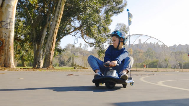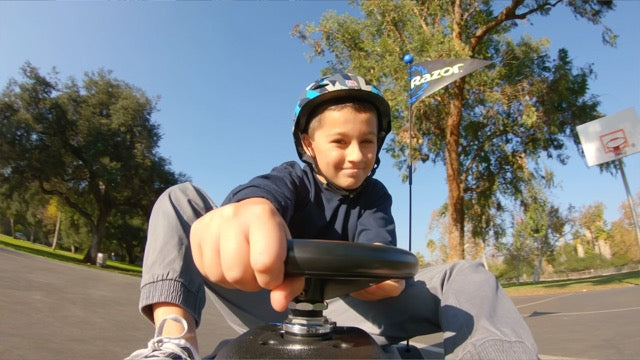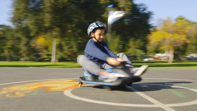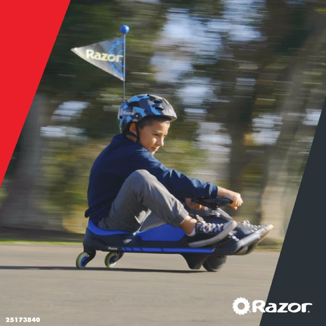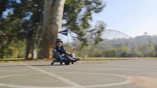 DRIFTING FUN FOR EVERYONE! With the all new Crazy Cart®Shift™ younger kids can drive, spin, and drift like never before! Designed to be fun for riders of all skill-levels, the Crazy Cart Shift starts as a fun spin session and grows into an unparalleled drifting experience as riders become more familiar with the controls. It's simplified drift system automatically engages so that riders can keep both hands on the wheel while focusing on steering and throttle control, just like the professionals! It is powered by Razor’s patented Power Core hub motor technology-a maintenance-free drivetrain system that is both powerful and efficient. It's frame is constructed of a new high-impact polymer which makes the Cart both durable and lightweight. A hidden top speed control switch allows parents to select the appropriate maximum speed for their child: 2.5 mph(4 km/h)for beginners and younger drivers or 8 mph (13km/h) fort he full Crazy Cart Shift experience. Redesigned from the ground up, the new Crazy Cart Shift delivers a one-of-a-kind drifting experience tailored to younger drivers!
